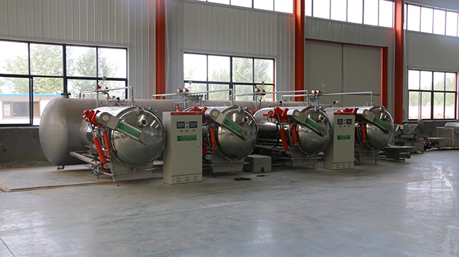 真空膨化係統主(zhǔ)要是(shì)由壓力罐和一個體積比壓力罐大5-10倍的真空罐組成。果蔬原料經預處理後,幹燥至(zhì)水分含(hán)量15%-25%(不同的(de)果蔬要求的含水量不同)。然後(hòu)將果蔬置於壓(yā)力罐內,通過(guò)加熱和加壓,使果蔬(shū)內部水分(fèn)突然(rán)汽化、閃蒸,是果蔬細(xì)胞膨脹(zhàng)達到膨化的(de)目(mù)的(de)。