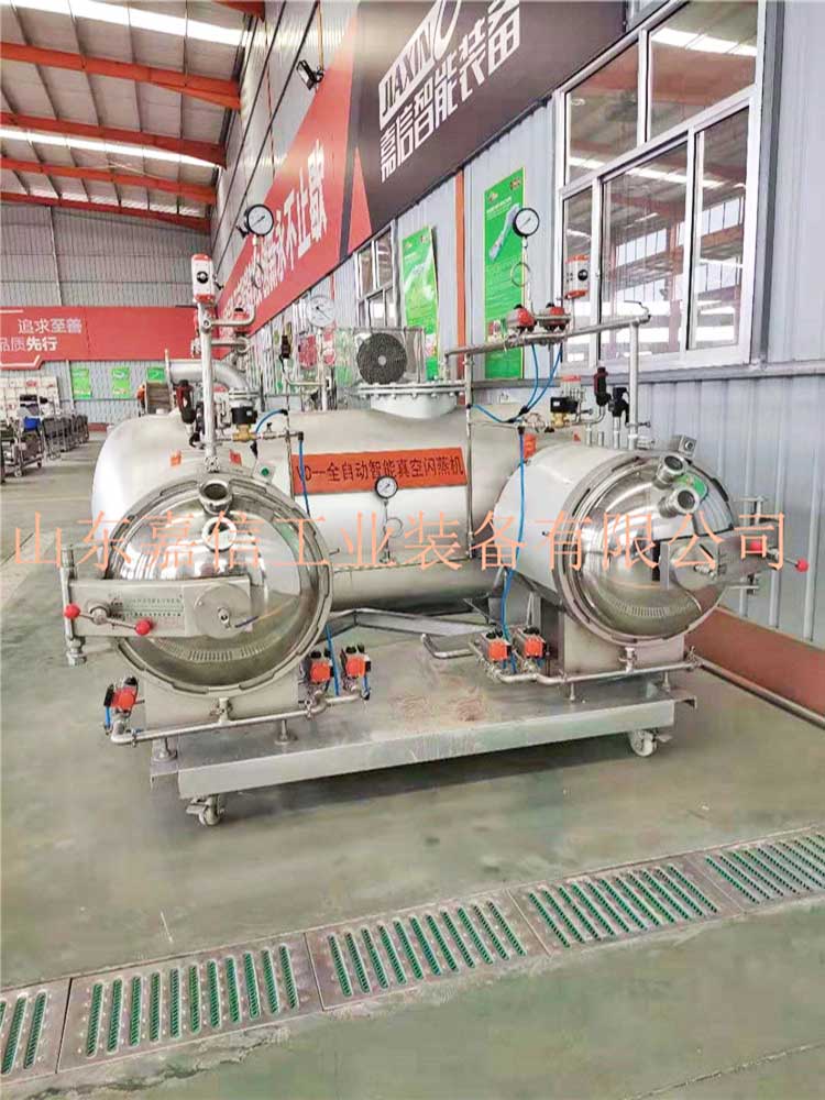 全自動果蔬脆片膨化線實現了果蔬加(jiā)工(gōng)從油炸到非油炸的飛躍,采用的果蔬壓差膨化幹燥技術,是一種新型、環保、節能的(de)非油炸(zhà)膨化幹燥技術,其基本原理是(shì)將經過預處理的水果或蔬菜原料,在膨化罐中升溫(wēn)加壓,一段時間(jiān)後瞬間泄壓,物料內(nèi)部水分瞬間汽化蒸發膨脹,並在真(zhēn)空狀態下脫水幹燥,進而實現(xiàn)體積膨脹(zhàng)、口感酥脆的果蔬膨化休閑食品。