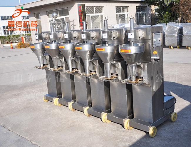 本機采用(yòng)SUS304不鏽鋼製造,具有(yǒu)美觀(guān)大方,堅固耐用,操作維修方便,效率省電等特點,可製作各類爽口(kǒu)、有韌(rèn)性、有彈性的肉丸(wán)。肉丸機主要用於雞肉丸、魚丸(wán)、蝦丸、豬肉丸、牛肉丸、羊肉丸、驢肉丸、蔬菜丸、海鮮丸等。肉丸生產(chǎn)線的主要設備有絞肉機、刨肉(ròu)機(jī)、拌餡(xiàn)機、斬(zhǎn)拌機、肉(ròu)丸機、成型(xíng)水槽、油炸生產設備等。肉丸機分機械調速和變頻調速兩種。丸子大小可更換模具