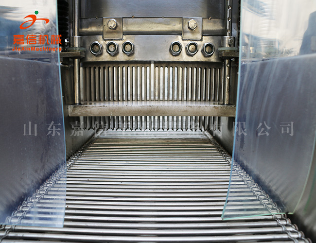 本機采用不鏽鋼(gāng)材料製作,設計合理。送肉鏈條可全盤托出,清洗方(fāng)便,針頭排列(liè)為單針單管,設有自動保護裝置,當注射針頭碰到硬物時,注射(shè)針自動彈(dàn)起,不受(shòu)損壞,真正達到了注射的肉無死角。