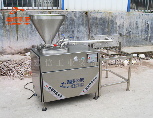 該機廣泛適用各種腸類製品的灌製。尤其對較幹的料餡相對其他(tā)灌腸機效果更(gèng)佳。該機上部設有貯料(liào)鬥、碟形閥,可實現不掀蓋連續灌製,提高了工作效率。