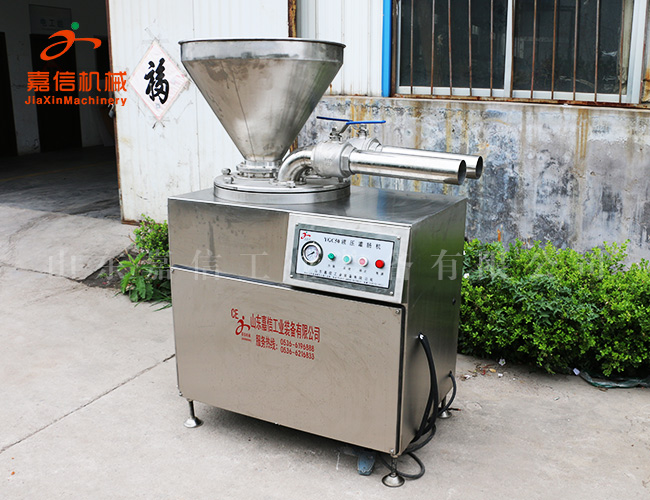 該機廣泛適用各種腸類製品的灌製。尤其對較幹的料餡相對其他灌腸機效果更佳。該機(jī)上部設有貯料鬥、碟形閥,可實現不掀蓋連續灌製,提(tí)高了工作效率。