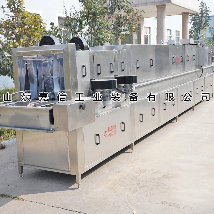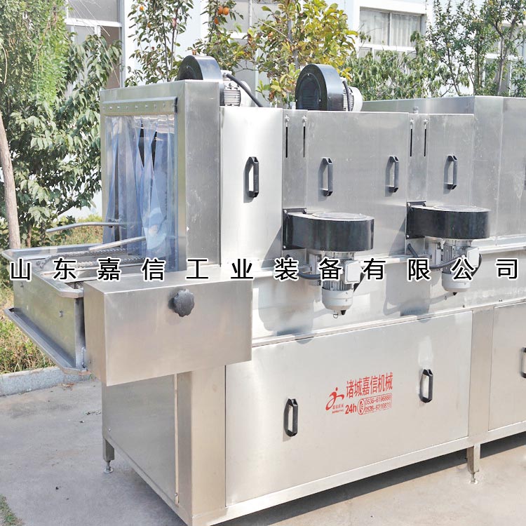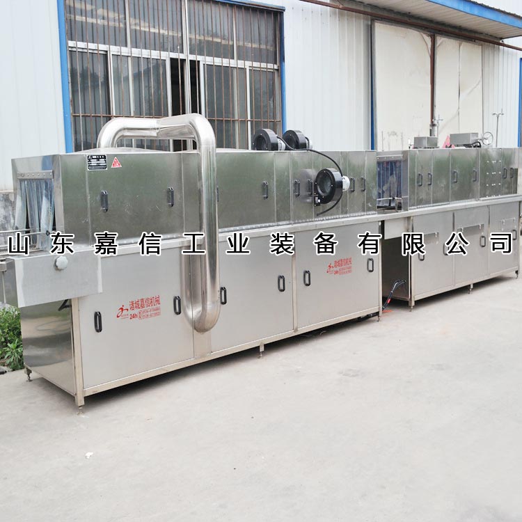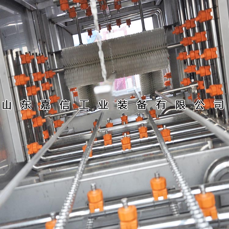 本機開(kāi)啟後,由(yóu)人工送料到噴淋清(qīng)洗(xǐ)機鏈條軌道或由輸(shū)送連接自動進料,先堿液噴淋,然後熱水噴淋,再進行清水循環噴(pēn)淋,消毒水噴淋。四組各自獨立(lì),外置循環水箱,過濾網可方便抽取。周轉箱衝洗進出口由人工(gōng)操作。